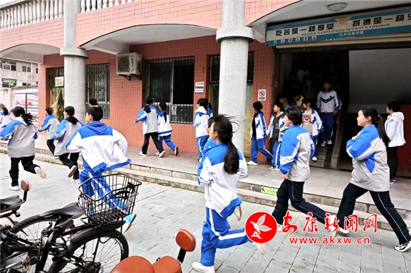 上午8時15分,隨著校園廣播發(fā)出的“警報聲”,全校教師及工作人員迅速到達(dá)指定崗位,40個教學(xué)班3000余名師生立即抱頭、捂鼻、蹲下就地避險。隨即,各班隨堂老師沉著冷靜,迅速指揮學(xué)生有序撤離教室,學(xué)生們緊張而不慌亂,聽從指揮,按規(guī)定線路、要求、有秩序地迅速疏散到安全聚集地。