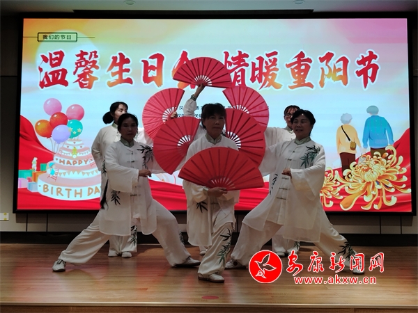 演出在優(yōu)美的舞蹈《花樣功夫扇》中拉開了帷幕,先后上演了多個(gè)老年人喜聞樂見的節(jié)目,清脆悅耳的歌聲、輕松歡快的舞蹈,老人們聽得入神,看得喜悅,整個(gè)活動中,掌聲雷動,笑聲不斷。壽星們在歡快的歌聲中共同許下美好的生日愿望,社區(qū)干部為壽星們戴上生日皇冠,將精心準(zhǔn)備的蛋糕、禮品分送到每位老人手上,甜蜜也蔓延在老人們的臉上。