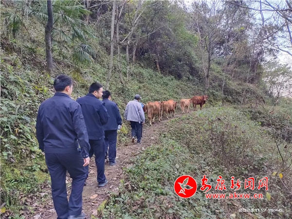 經(jīng)了解,羅某于11月14日中午將5頭耕牛趕放到距家約幾公里的山林里面后,就回家忙農(nóng)活了,耕牛無人看管,11月14日18時(shí),羅某上山看牛還在山林中,由于天色已晚,山路崎嶇陡峭,羅某就未將牛趕回家,而是散放至山林中,第二天中午羅某上山發(fā)現(xiàn)牛不見了,經(jīng)自行找尋無果,11月16日,心急如焚的羅某懷疑牛被人盜走,報(bào)警求助。了解情況后,民警立即對(duì)現(xiàn)場(chǎng)進(jìn)行了勘查及走訪,初步推斷牛應(yīng)該是自行走失了,立即組織13名民輔警、兩輛警車及無人機(jī)等設(shè)備,開展尋找,并聯(lián)系村干部,讓村干部發(fā)動(dòng)群眾幫忙尋找耕牛。經(jīng)過兩天搜尋,11月17日,民輔警在深山一處樹林中找到了走失的5頭耕牛。見耕牛失而復(fù)得,羅某臉上笑開了花,對(duì)派出所民輔警連連致謝。