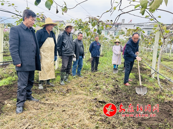 “獼猴桃園冬季管護(hù),增施有機(jī)肥是改良土壤透氣性、增加土壤有機(jī)質(zhì)含量的重要環(huán)節(jié),施肥的時(shí)候一定要注意,要給樹上多少肥料,主要要參考一下樹體的大小,還要看一下它土壤的肥沃情況……”在蒲溪鎮(zhèn)溪畔社區(qū)的獼猴桃種植基地,縣獼猴桃工作站的技術(shù)人員正在給基地務(wù)工人員現(xiàn)場講解獼猴桃施肥的標(biāo)準(zhǔn)和要求,講解結(jié)束后,工人們便分散到不同的獼猴桃種植地塊中,有條不紊地進(jìn)行著施肥等管護(hù)工作。獼猴桃冬季管護(hù)尤為重要,通過開展獼猴桃冬季管護(hù)工作,可以加深農(nóng)戶對獼猴桃冬季管護(hù)技術(shù)的掌握,也為獼猴桃安全越冬,實(shí)現(xiàn)豐產(chǎn)豐收、助力產(chǎn)業(yè)發(fā)展提供保障。