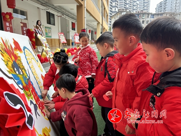“這是我做的手工龍,今年是龍年,我今天很開心,又學(xué)到了新的知識,我要把這個龍帶回家給爺爺看。”小朋友吳錫雯一邊做手工一邊笑著說道。除了做手工,學(xué)校還舉行了升旗儀式,貼龍鱗,許心愿!孩子們紛紛在標(biāo)簽紙上寫下新年愿望及美好祝福,化作一片片龍鱗,小心翼翼地貼在巨龍身上,寄語最美好的未來。