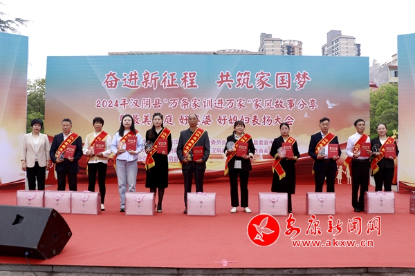 本網(wǎng)訊(通訊員 賀珍珍 熊樂 張欣欣)為進(jìn)一步弘揚(yáng)家訓(xùn)文化,傳承優(yōu)良家風(fēng),5月9日,由漢陰縣紀(jì)委監(jiān)委、縣委宣傳部主辦,漢陰縣婦聯(lián)、縣文聯(lián)承辦的“奮進(jìn)新征程 共筑中國夢(mèng)”——“萬條家訓(xùn)進(jìn)萬家”家風(fēng)故事分享暨最美家庭、好婆婆、好媳婦表揚(yáng)大會(huì)在漢陰縣鳳凰廣場(chǎng)舉行。