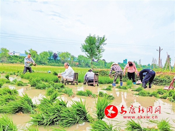在景區(qū)的核心區(qū)域堰坪村,一行行秧苗整齊排列,綠油油的稻苗奮然向上,舒展身姿,長(zhǎng)勢(shì)喜人,微風(fēng)拂過,此起彼伏,滿目翠綠。隨處可見農(nóng)民們正挽起袖子、卷起褲腿,有的負(fù)責(zé)在田間里運(yùn)苗,有的在田間低著頭、弓著腰,將嫩綠的秧苗插至田間,為農(nóng)田“換新衣”,披上新“綠裝”。