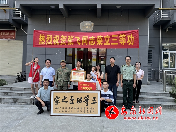 本網(wǎng)訊(通訊員 張輝)8月1日,八一建軍節(jié)當(dāng)天,漢陰縣城關(guān)鎮(zhèn)聯(lián)合縣人民武裝部、縣退役軍人事務(wù)局為轄區(qū)4名榮立“三等功”的現(xiàn)役軍人送上立功喜報(bào)和慰問(wèn)金,把黨和政府的關(guān)心關(guān)愛(ài)送到軍人軍屬心坎上。