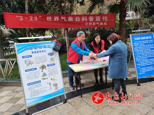 3月23日是第63個(gè)世界氣象日,漢陰縣氣象局下鎮(zhèn)村、進(jìn)社區(qū),向社會公眾發(fā)放氣象科普資料,開展氣象法律知識講解,傳播氣象防災(zāi)減災(zāi)知識,大力提升人民群眾氣象防災(zāi)……