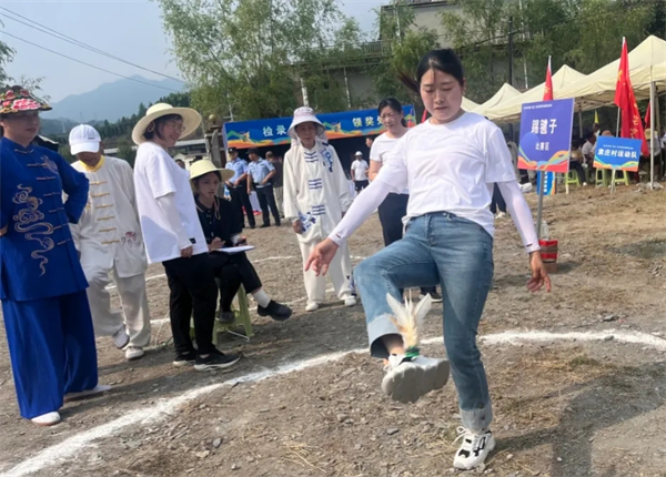 據(jù)悉,本次活動(dòng)舉辦地分別為溪映明月·南山云見片區(qū)和民族風(fēng)情·運(yùn)動(dòng)休閑片區(qū),共開展了“背簍投籃”“稻田摸魚”“田園拔河”等活動(dòng),另有“搶凳子”“跳大繩”等5個(gè)團(tuán)體賽項(xiàng)目吸引了大量群眾參與體驗(yàn)。 “踢毽子”“抓石子”“斗雞、跳繩、抽陀螺”,彰顯農(nóng)活絕技的“拋秧苗、滾鐵環(huán)、趣味插秧賽”等8個(gè)個(gè)人項(xiàng)目,將田園風(fēng)光里的郊外農(nóng)民趣味運(yùn)動(dòng)會(huì)推向高潮。