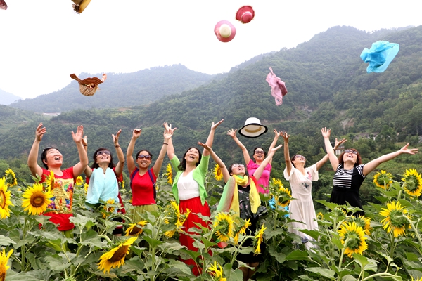 葵花競(jìng)相開放,吸引眾多游客前往,一睹美景。據(jù)嵐皋縣城關(guān)鎮(zhèn)茅坪村支書陳世貴介紹,自開展精準(zhǔn)脫貧工作以來,茅坪村因戶施策,為10戶貧困戶流轉(zhuǎn)土地100畝種植油葵,預(yù)計(jì)每畝收益可達(dá)到2400元,并計(jì)劃從明年起,再將其打造成農(nóng)業(yè)觀光旅游項(xiàng)目,屆時(shí),葵花園的收益將大幅提高。wiM安康新聞網(wǎng)