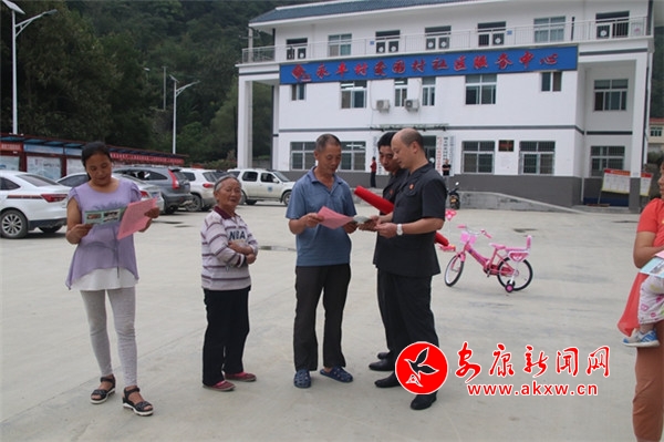 為更好地達(dá)到宣講效果,宣講團(tuán)成員提前到周邊移民搬遷安置點(diǎn)、村組院落發(fā)放掃黑除惡專項(xiàng)斗爭(zhēng)、平安建設(shè)、“無訟新村”等宣傳單共計(jì)300余份,吸引60余名群眾參與到宣講活動(dòng)現(xiàn)場(chǎng)。