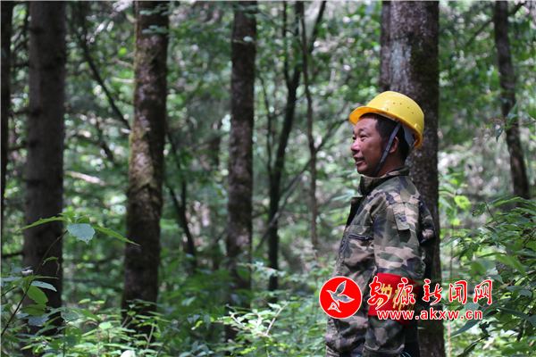 上山途中,朱忠銀邊走邊四處觀察,有什么異常情況會(huì)及時(shí)排除并記錄下來(lái),看到垃圾隨手撿起。日復(fù)一日,風(fēng)雨無(wú)阻,他每天都要“鉆山溝、爬樹林”往返穿梭好幾次,管理著3200畝原始次生林,他用默默守護(hù)換來(lái)滿山蒼翠,守護(hù)著家鄉(xiāng)的這片綠色資源。