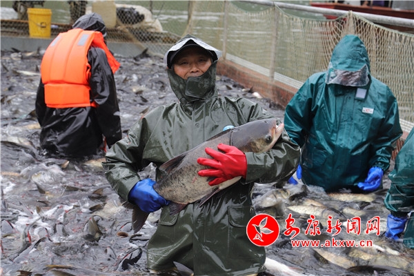 本網(wǎng)訊(通訊員 廖霖 曹婷婷 邱萌)5月7日,嵐皋縣南宮湖迎來(lái)了一年一度的拉網(wǎng)捕魚時(shí)節(jié),10多名漁民在陣陣吆喝聲中拉網(wǎng)收網(wǎng),魚兒在網(wǎng)箱里歡騰雀躍,繪制出了一幅“魚躍人歡漁家樂(lè)”的精美畫卷。優(yōu)質(zhì)的淡水資源使這里的水產(chǎn)品獲得了無(wú)公害產(chǎn)品產(chǎn)地認(rèn)證,庫(kù)區(qū)周邊的漁民將對(duì)20萬(wàn)斤花鰱魚、白鰱魚進(jìn)行集中裝車,當(dāng)日,3.2萬(wàn)斤花鰱魚、白鰱魚遠(yuǎn)銷成都等大中城市市場(chǎng)。
