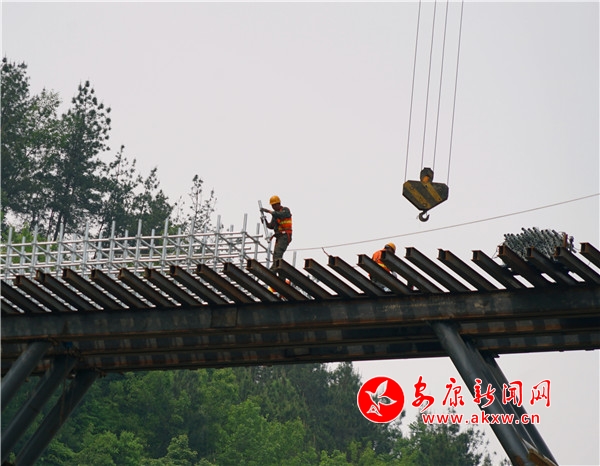 連日來,安嵐高速公路建設(shè)現(xiàn)場(chǎng)一派繁忙景象,塔吊林立、機(jī)器轟鳴,工人們正在爭分奪秒、搶抓工期,有的固定鋼架,有的鋪設(shè)橋面,有的精密焊接,工程建設(shè)正在迅速推進(jìn)中。(尹正華 攝) spD安康新聞網(wǎng)