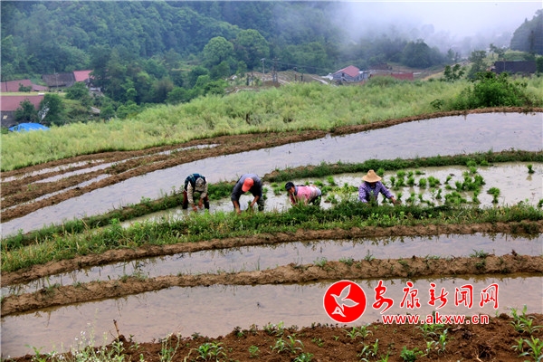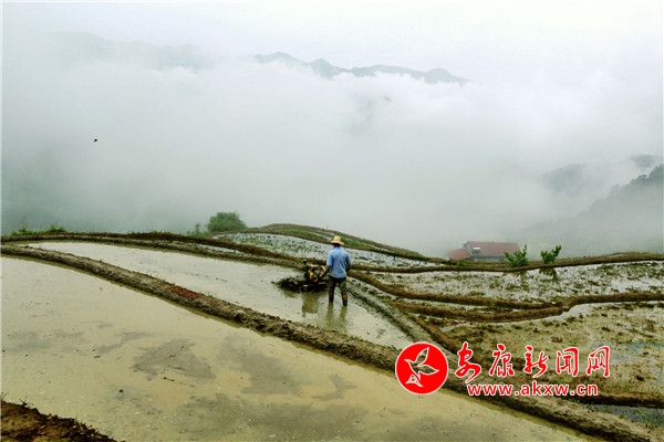 本網訊(通訊員 廖霖 馬桂芳)五月立夏農耕忙,插下秧的梯田田水如鏡,波光粼粼;青山、白霧、梯田、鮮花,寧靜和諧的田園美景里,錯落有致、形態(tài)各異的梯田與朝霞和農民忙碌勞作的身影一起構成了一幅美麗的畫卷,吸引不少游客和攝影愛好者前來觀賞拍攝。
