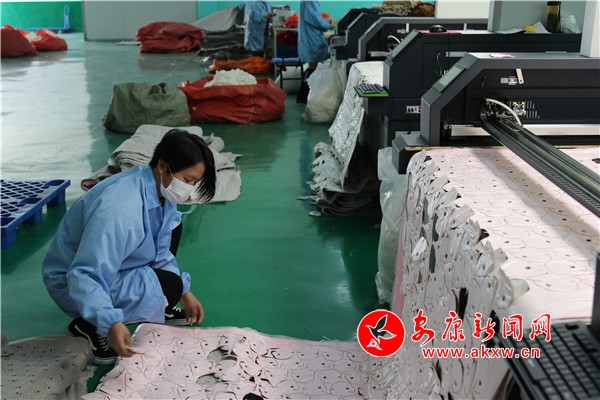 近日,嵐皋縣民主鎮(zhèn)富嵐工藝品有限責(zé)任公司內(nèi),包裝車間、殘疾人車間、裁剪車間呈現(xiàn)出一片繁忙的景象。扶貧車間工人高厚菊:“我來自新風(fēng)村,每個月有4千元左右的收入,就在家門口掙點(diǎn)錢也好,為家里添些零用錢。”今年31歲的高厚菊是一名貧困戶,她非常滿意這份工作很高興地說道。