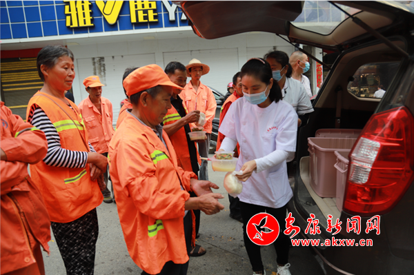 一份家常菜 ,情暖環(huán)衛(wèi)工人心。連日來,縣城的環(huán)衛(wèi)工每天清晨8時就會聚集在郵電小區(qū)門口,小河口、肖家壩三個點每天向城內(nèi)環(huán)衛(wèi)工人免費(fèi)定時定點提供52份早餐。筆者看到,一群身穿著環(huán)衛(wèi)服的環(huán)衛(wèi)工人正在品嘗美食,他們臉上洋溢著喜悅的神情,伴著早餐那騰騰的熱氣,已成為嵐皋這座小城中一道靚麗的風(fēng)景。
