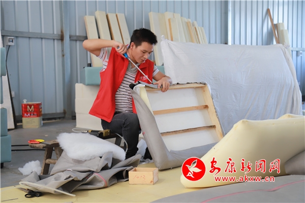 引來家具廠,村民放下鋤頭走進車間當工人。52歲村民鄭合芳,自從村里建起了家具廠,鄭合芳便成了廠里的一名工人,進廠務工小半年的她不僅掌握了沙發(fā)皮套加工技術,還實現了掙錢、看家兩不誤。“放下鋤頭進入車間,有班上,又可以掙錢,一個月三、四千元,回去后還可以照顧家里,一舉兩得的好事。”鄭合芳說。