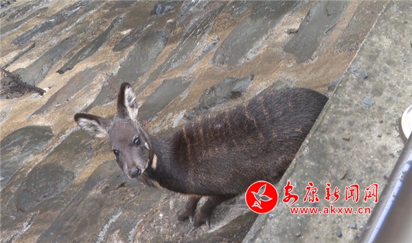 嵐皋林業(yè)局野生動(dòng)物保護(hù)站、新華森林派出所迅速派人趕赴現(xiàn)場。根據(jù)地形,采用抄網(wǎng)捕獲方式進(jìn)行營救,經(jīng)工作人員鑒定,確認(rèn)該野生動(dòng)物為國家一級(jí)保護(hù)動(dòng)物林麝,體重約9千克,體長600毫米,肩高500毫米,尾巴短、四肢細(xì)長、蹄子狹而尖、耳朵長而直立。經(jīng)過相關(guān)人員檢查,發(fā)現(xiàn)這只林麝無明顯外傷且健康,符合放生條件,隨即驅(qū)車將其帶至密林深處放歸大自然。