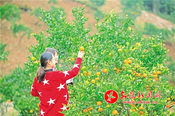 立冬過后,又到了嵐皋縣大道河鎮(zhèn)柑橘成熟的季節(jié),岸邊連片的坡地上,金黃色的果子掛滿枝頭,在陽光的照耀下,飄香誘人。