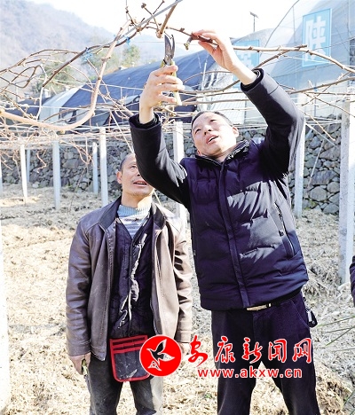 陳國富2019年在金珠溝村種植獼猴桃,他除了有150畝老園區(qū)外,還新建了100畝獼猴桃新園區(qū),去年獼猴桃已取得了初步的經(jīng)濟(jì)效益。進(jìn)入冬天,獼猴桃樹上葉子完全掉落后,他就開始進(jìn)行修剪,現(xiàn)在接續(xù)的是去年未完成的工作。