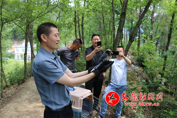 本網(wǎng)訊(通訊員 蘇鴻浩 趙濱源 劉秋洪)6月12日,嵐皋縣林業(yè)局野生動植物保護(hù)管理站工作人員將群眾發(fā)現(xiàn)的兩只國家二級保護(hù)動物灰林鸮、斑頭鵂鹠,一只三有保護(hù)動物紅嘴藍(lán)鵲和一只省重點保護(hù)動物果子貍放歸山林。