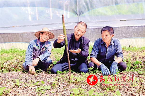 原來(lái),這兩位是鄰村的村民,利用雨天農(nóng)閑時(shí)間,專程來(lái)向他請(qǐng)教魔芋追肥和病蟲(chóng)防治技術(shù),早上到家問(wèn)過(guò)王永成的妻子后,一路找到了地頭。