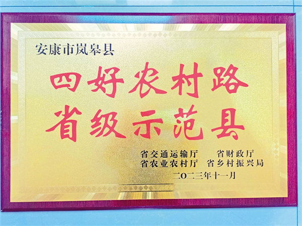 近日,陜西省交通運輸廳、財政廳、農(nóng)業(yè)農(nóng)村廳、鄉(xiāng)村振興局聯(lián)合下發(fā)《關(guān)于2023年“四好農(nóng)村路”省級示范市、示范縣命名的通報》,嵐皋被命名為“四好農(nóng)村路”省級示范縣,也是2023年度安康市唯一獲此殊榮的縣區(qū)。