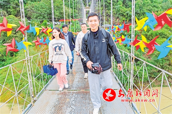 游客穿過(guò)金馬吊橋,前往馬宗村觀光。