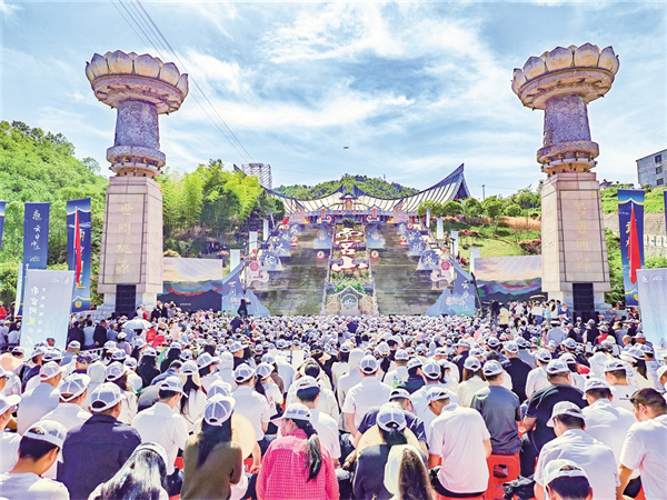 暮春的南宮山,蒼翠浸染。在悠揚(yáng)的《神奇美麗南宮山》旋律中,活動(dòng)正式啟幕,《序章·天門啟道》《天玄·問道山河》《地杰·武韻巴人》《和鳴·萬象共生》四大篇章層層遞進(jìn)。伴隨著激昂的音樂,國樂表演《刀劍如夢》、竹海劍影《笑傲江湖》、巴人武韻《虎鈕錞于》、武術(shù)《天地人和》、舞+武《舞武對(duì)弈》等節(jié)目依次出場,活動(dòng)現(xiàn)場鼓點(diǎn)如雷,舞者們騰空而起,剛猛的武術(shù)招式與充滿力量感的戰(zhàn)舞動(dòng)作交織,每一次騰躍,都將現(xiàn)場觀眾的熱血與激情點(diǎn)燃。