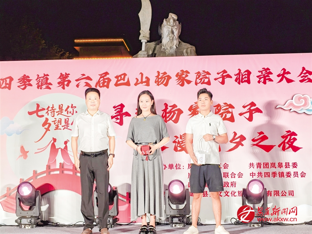 本網(wǎng)訊(通訊員 向秋如 余倩)8月29日晚,嵐皋縣四季鎮(zhèn)楊家院子省級(jí)旅游度假區(qū)燈火璀璨、笑語盈盈,由該縣總工會(huì)、團(tuán)縣委、縣婦聯(lián)、四季鎮(zhèn)聯(lián)合主辦的第六屆“尋夢(mèng)楊家院子 浪漫七夕之夜”相親活動(dòng)浪漫啟幕。