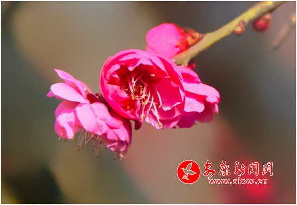 ■廖霖嵐河岸畔梅花開,探春尋梅正當(dāng)時。在嵐皋縣城蓮花公園植物園的林間,恰巧路過這幾棵花樹,忽然一回頭,看見幾株樹葉間露出幾朵嫣紅的花蕾,再一看樹上的花……