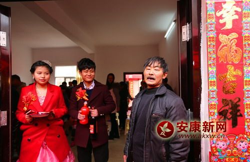 喜宴結(jié)束后,記者和新郎的交談中得知,25歲的武道勝是一名汽車修理工,別看年紀不大,卻是一名修車的老師傅了,一個月4000多元的工資,在寧陜當?shù)厮愕纳鲜侵猩纤。談到他和黃靜是如何相戀時,內(nèi)向的小武,顯得更加羞澀。到是黃靜打開了她的話匣子,“我們是通過媒人介紹走到一起的,兩家相隔也不遠,他經(jīng)常帶我一起去看家門前小河邊覓食的朱鹮!還給我說朱鹮是最忠貞的鳥,一輩子只有一個配偶。他想我們倆的愛情像朱鹮一樣完美!”“我聽朱鹮站的李站長說的!”武道勝在旁邊不好意思的撓著頭說道。