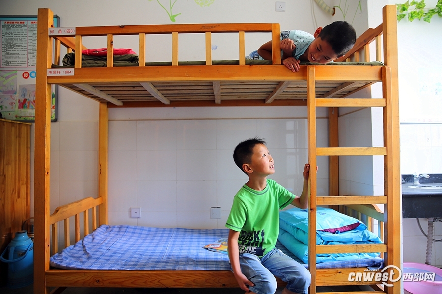 兩個(gè)住宿的孩子在宿舍開(kāi)心地聊天。