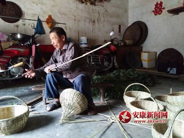 今年78歲楊繼學,是寧陜縣金川鎮(zhèn)黃金村人,自幼雙目失明的他,50多年來一直靠自己的感覺與雙手,在家編織竹籃、背簍等篾具。