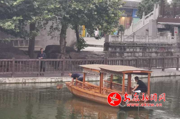 “從今年4月份開始,我們就經(jīng)?吹竭@個(gè)小伙劃著一條小船在長安河畔打撈垃圾,久而久之大家都稱他為‘船老大’”,周邊群眾說道。