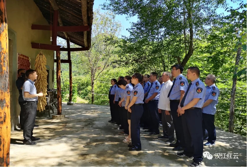 (寧陜縣市場(chǎng)監(jiān)管局的黨員在基地上黨課)