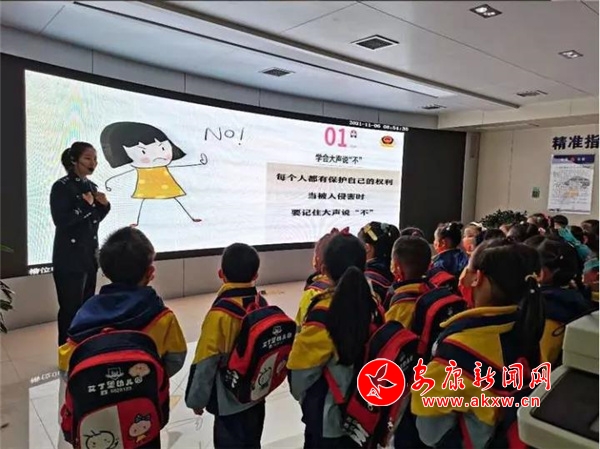 課堂上,110接警員通過PPT講解、觀看視頻監(jiān)控畫面、播放宣傳片、現(xiàn)場模擬接報警對話等多種方式零距離與小朋友們互動交流,重點向小朋友們講解“什么情況可以撥打110、撥打110需要注意哪些問題、打通110電話時應該如何求助”等方面知識,引導小朋友在遇到危險時正確使用撥打110電話,教育小朋友尊法守紀,不亂涂亂畫、損毀公私財物,不亂穿馬路、遵守交通規(guī)則,小手拉大手,做平安建設的“小代言人”“小監(jiān)督者”。