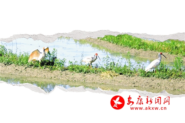 現(xiàn)在,在寧陜縣城關(guān)鎮(zhèn)寨溝村,經(jīng)常能看到朱鹮時(shí)而在田埂上棲息,時(shí)而在稻田里捉泥鰍,時(shí)而翱翔在青山綠水之間,已然成為當(dāng)?shù)匾坏漓n麗的風(fēng)景線。