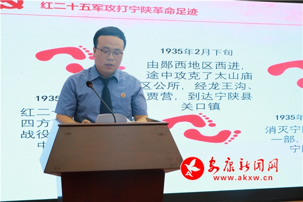 此次黨日活動是寧陜縣檢察院結(jié)合常態(tài)化開展“尋訪革命舊址 保護革命文物 傳承革命精神”活動,以講解寧陜紅色故事,講述辦案體悟為主要內(nèi)容,圍繞尋訪環(huán)節(jié)中干警的親身經(jīng)歷、親身感受結(jié)合公益訴訟檢察工作進行演講,從而在尋訪中體悟黨和人民英勇奮斗的光榮歷史,及時發(fā)現(xiàn)案件線索;在辦案中加深對革命傳統(tǒng)和革命文化的體悟,強化做好保護革命文物工作的政治自覺、法治自覺、檢察自覺;在體悟中傳承紅色基因、感受信仰力量,把活動成效轉(zhuǎn)化為對黨忠誠、履職奉獻、擔(dān)當(dāng)作為的實際行動。