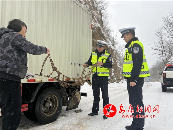 組織廣貨街交警中隊(duì)、旬陽壩交警中隊(duì)和巡查組民輔警在345國道石溝梁路段及210國道平河梁、月河梁、腸子峽等重點(diǎn)路段流動(dòng)巡邏檢查。對未掛防滑鏈條的車輛,要求停車掛好防滑鏈條后再上路行駛,對不會(huì)安裝防滑鏈條的車主,民警手把手教司機(jī)安裝防滑鏈條,并叮囑駕駛?cè)藭r(shí)刻注意冰雪路面行車安全,提高安全行車意識(shí)。同時(shí),會(huì)同公路部門、鎮(zhèn)村在路面撒鹽融冰,清掃積雪,并要求各鎮(zhèn)勸導(dǎo)站開展交通安全勸導(dǎo),全力預(yù)防道路交通事故發(fā)生。