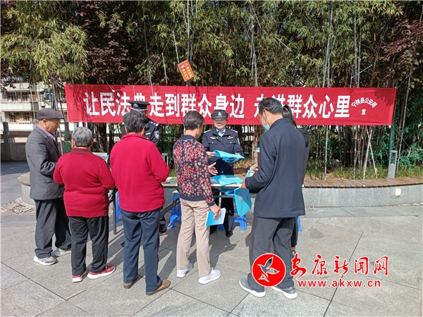 在縣政府廣場(chǎng)活動(dòng)現(xiàn)場(chǎng),通過懸掛橫幅、發(fā)放各類宣傳書籍、法治宣傳品等普法資料、設(shè)立法律咨詢服務(wù)臺(tái)等形式向群眾宣傳《中華人民共和國民法典》《信訪工作條例》和《反電信網(wǎng)絡(luò)詐騙法》。民警結(jié)合群眾普遍關(guān)心的婚姻家庭、遺囑繼承、勞務(wù)糾紛、高空拋物、財(cái)產(chǎn)保護(hù)、隱私保護(hù)等熱點(diǎn)難點(diǎn)法律問題,借助群眾身邊日常小事、糾紛案例,進(jìn)行了耐心講解和交流,讓法律真正深入人心、為民所用,解民憂、紓民困。