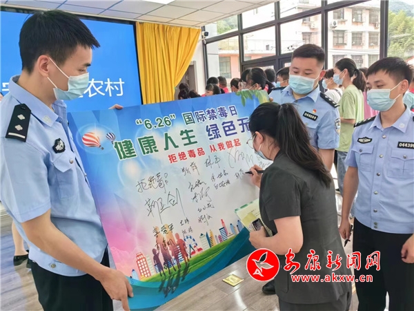 活動(dòng)以歌舞、三句半、詩歌朗誦、禁毒知識(shí)有獎(jiǎng)問答、觀看禁毒短視頻等多種方式呈現(xiàn)。禁毒民警用方言演繹的三句半《毒品害己又害人》,形象生動(dòng)地闡述了毒品的危害,贏得了現(xiàn)場觀眾的陣陣掌聲;社區(qū)姐妹花舞蹈隊(duì)活力四射的健身舞《花開無毒》,展現(xiàn)了對(duì)美好生活的向往,遠(yuǎn)離毒品健康人生煥發(fā)的蓬勃激情和生命力;配樂詩朗誦《讓生活更美好》呼吁我們共同攜起手來用愛喚起希望,用心抗拒毒魔;一曲《我相信》將活動(dòng)引入高潮。整個(gè)活動(dòng)過程中還穿插了毒品知識(shí)搶答、“健康人生 綠色無毒”簽字儀式,觀看禁毒宣傳短片“秦小尉”3D動(dòng)畫、MG微視頻等互動(dòng)環(huán)節(jié),在主持人帶領(lǐng)下的“拒絕毒品 從我做起”禁毒宣誓活動(dòng)更加彰顯了全社會(huì)群眾參與禁毒人民戰(zhàn)爭、打贏全面禁毒人民戰(zhàn)爭的信心和決心。