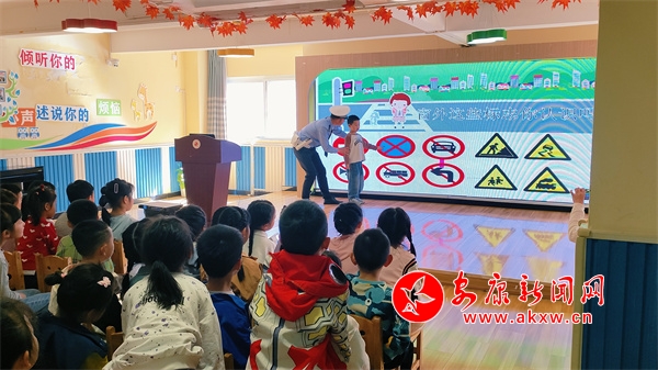 活動(dòng)中,民警用生動(dòng)有趣的語言為小朋友講解了安全行走、安全過馬路、安全乘車以及正確佩戴安全頭盔、系好安全帶、認(rèn)識(shí)交通標(biāo)志標(biāo)識(shí)等基本的交通安全知識(shí)。同時(shí),通過現(xiàn)場互動(dòng)、你問我答的方式,向?qū)W生們講解闖紅燈、橫穿馬路、多人騎乘摩托車等不文明交通行為的危害。最后,民警現(xiàn)場教學(xué)交通指揮手勢,加深小朋友對交通安全常識(shí)的理解與記憶,引導(dǎo)他們從小樹立安全出行的理念,增強(qiáng)安全意識(shí),自覺遵守交通法規(guī)。