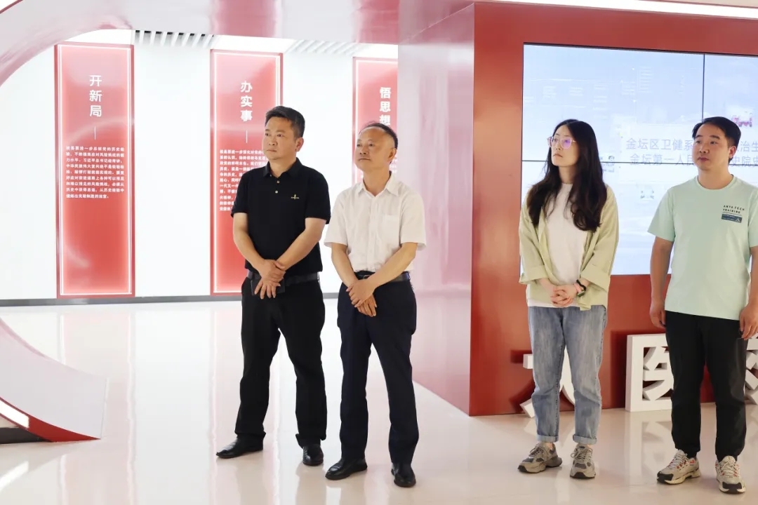 在院領(lǐng)導(dǎo)的陪同下,賈開(kāi)朗一行參觀了醫(yī)院的門(mén)診醫(yī)療街。寬敞明亮的診療環(huán)境,先進(jìn)的設(shè)施設(shè)備,各類科室布局合理給賈書(shū)記一行留下深刻印象。隨后又參觀了醫(yī)院黨史院史館,這里陳列著醫(yī)院的發(fā)展歷程、重要事件和杰出人物,記錄著醫(yī)院從建院初期的艱辛起步,到如今發(fā)展成為一所具有較大影響力的現(xiàn)代化醫(yī)院的歷史變遷。