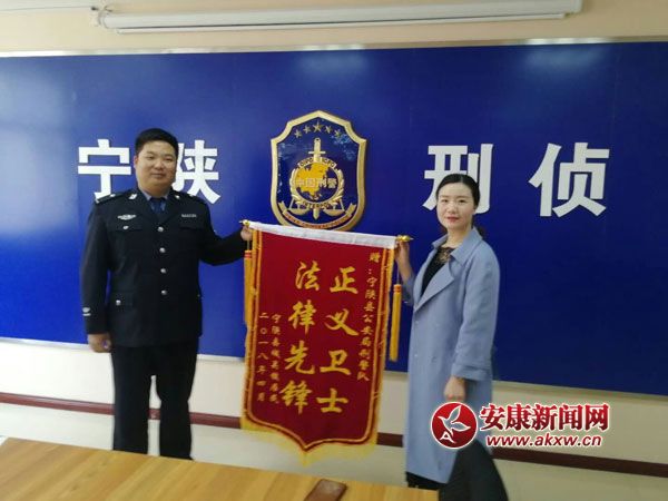 安康新聞網(wǎng)訊(通訊員 張敏 鄧皓)4月9日,寧陜縣城關(guān)鎮(zhèn)居民呂女士來(lái)到寧陜縣公安局刑偵大隊(duì)一中隊(duì),為辦案民警送上一面印有“正義衛(wèi)士,法律先鋒”字樣的錦旗……