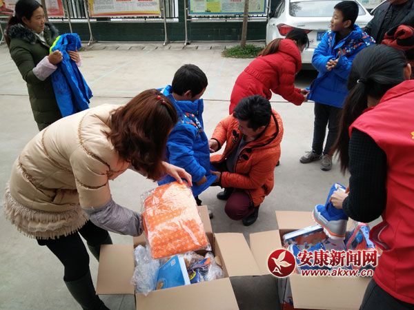 工作人員幫助孩子們穿上新衣活動結(jié)束合影安康新聞網(wǎng)訊(通訊員 杜明文)1月5日上午,寧陜縣義工聯(lián)兩名志愿者為梅子鎮(zhèn)5名困難家庭兒童送來了壹基金大禮包,這是孩……