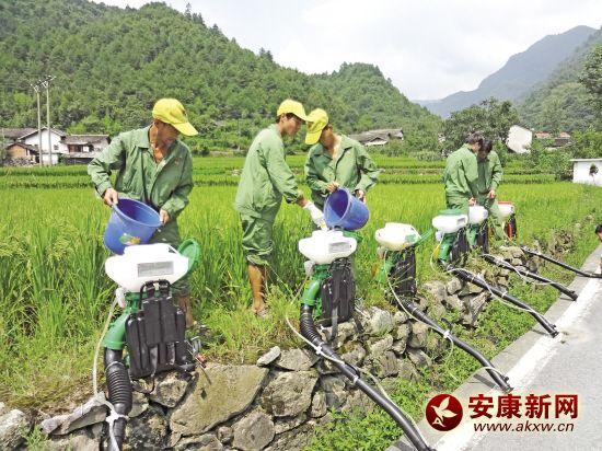 當(dāng)前正是水稻稻飛虱、稻縱卷葉螟等病蟲害防治的關(guān)鍵時(shí)期。8月10日,在寧陜縣城關(guān)鎮(zhèn)青龍村董家壩,專業(yè)化防治隊(duì)員背著機(jī)動(dòng)噴霧器,一字排開地進(jìn)行水稻后期病蟲害防……