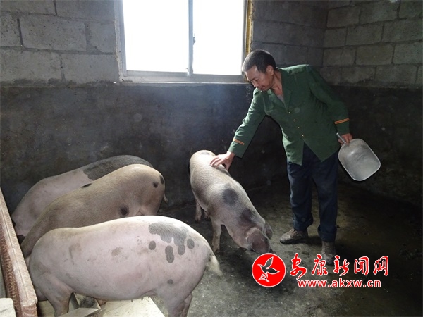 去年,在鎮(zhèn)村干部的指導(dǎo)和幫扶下,為他謀劃了發(fā)展養(yǎng)豬的路子。路子想好了,資金怎么辦?駐村工作隊(duì)的同志一方面聯(lián)系平利曙光生態(tài)農(nóng)業(yè)有限公司,為他出資一部分解決燃眉之急,建起了100m²的豬圈,養(yǎng)豬26頭。一方面通過小額貼息貸款3萬元,互助資金協(xié)會貸款1萬元,用于壯大養(yǎng)豬規(guī)模。豬圈建好后,袁業(yè)全決定好好干,他積極向附近養(yǎng)豬大戶學(xué)習(xí),參加各種培訓(xùn)班,認(rèn)真學(xué)習(xí)養(yǎng)殖技術(shù),真正當(dāng)起了“豬倌”,很快就掌握了養(yǎng)殖技術(shù)。在養(yǎng)豬過程中,他注重生態(tài)養(yǎng)殖,用玉米釀酒,用酒糟喂豬,豬糞處理當(dāng)做有機(jī)化肥還田,他還在豬圈安裝了攝像頭,實(shí)行了信息化養(yǎng)殖管理。經(jīng)過袁業(yè)全的精心照料,第一批生豬出欄后,就賺了3萬多元,目前存欄的15頭豬,年底出欄預(yù)計有將近3萬余元的收入。