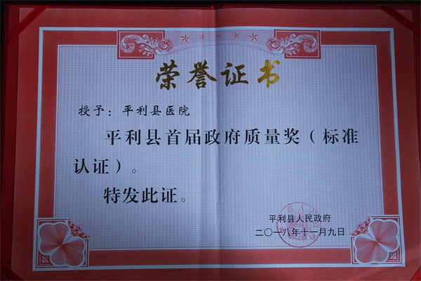 平利縣醫(yī)院獲首屆政府質(zhì)量獎(jiǎng)“標(biāo)準(zhǔn)認(rèn)證獎(jiǎng)”