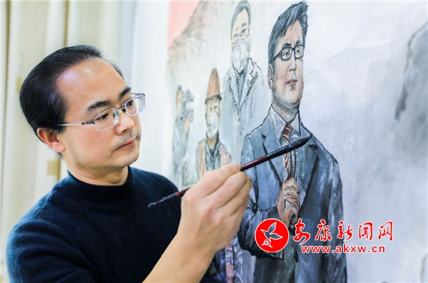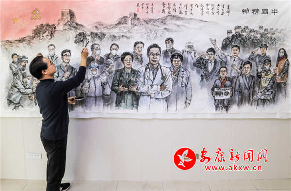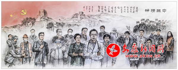 國畫作品《中國精神》主要歌頌在“眾志成城抗疫情”中的“逆行者”和各界英雄人士,反映抗擊疫情斗爭中涌現(xiàn)出來的感人形象和典型事件。