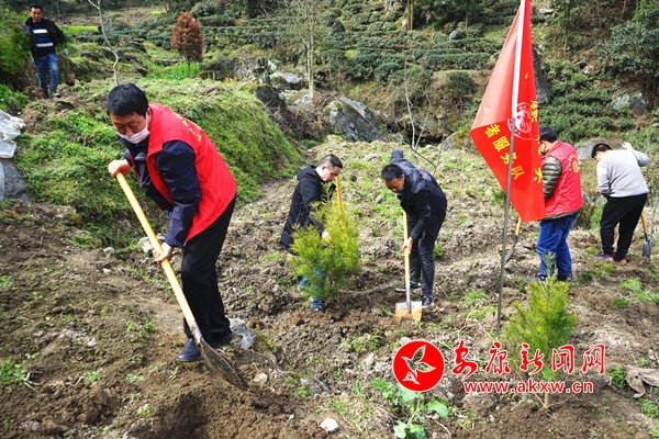 在義務(wù)植樹活動現(xiàn)場,來自鎮(zhèn)機(jī)關(guān)的黨員志愿者和農(nóng)村黨員、群眾們干勁十足,有的搬運(yùn)樹苗、有的放線打點(diǎn)、有的揮鍬挖坑、有的扶直苗木、有的培土踩實,各個環(huán)節(jié)都有條不紊的進(jìn)行著。栽下樹苗,同時也種下了希望,經(jīng)過兩個多小時的辛勤勞動,原本荒涼的土地現(xiàn)在呈現(xiàn)出的是一片片綠色的新景象,在一抹抹“志愿紅”的點(diǎn)綴下顯得分外“惹眼”。