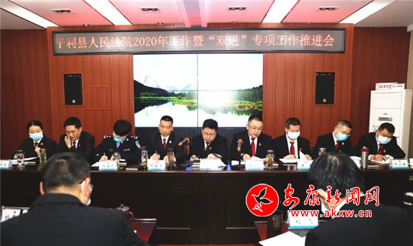 本網(wǎng)訊 3月30日,平利法院召開2020年工作暨“雙進(jìn)”專項(xiàng)工作推進(jìn)會(huì),貫徹落實(shí)各級(jí)政法工作會(huì)議和省、市法院工作會(huì)議精神,回顧總結(jié)2019年工作,全面安排2020年工作。會(huì)議由黨組副書記、副院長(zhǎng)汪道鵬主持。全體干警參會(huì)。